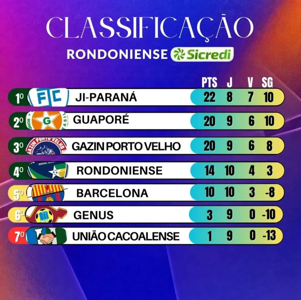 Além da liderança isolada, o Ji-Paraná segue invicto no Campeonato Rondoniense Sicredi 2026, com 10 gols marcados e nenhum sofrido. O resultado garante ainda de forma antecipada a classificação do Ji-Paraná na fase final do certame estadual. Já o Barcelona ocupa a quinta posição na tabela de classificação, com 10 pontos em três vitórias, um empate e seis derrotas.
