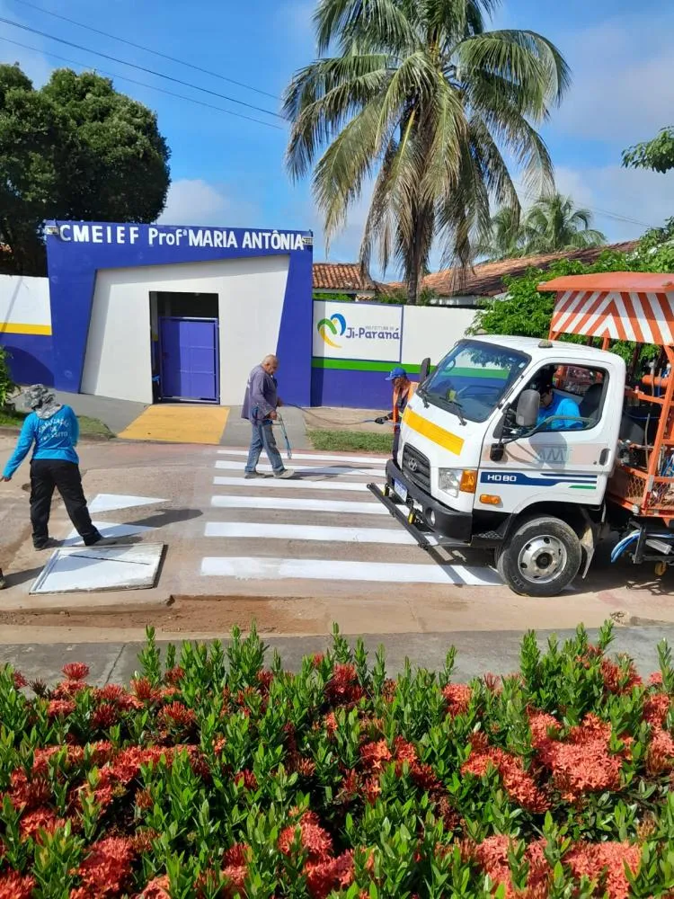 A ação contempla a pintura de faixas de pedestres e lombadas, com o objetivo de orientar condutores, reduzir a velocidade dos veículos e prevenir acidentes, principalmente nas proximidades das unidades de ensino.
